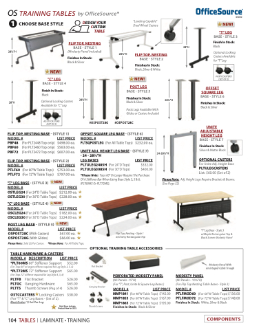 OSCLEG24 (For 24"D Table Tops) OSCLEG30 (For 30"D Table Tops)