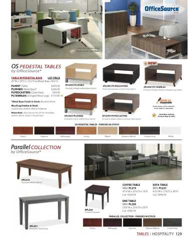 OS PEDESTAL TABLES - FINISHES IN STOCK: