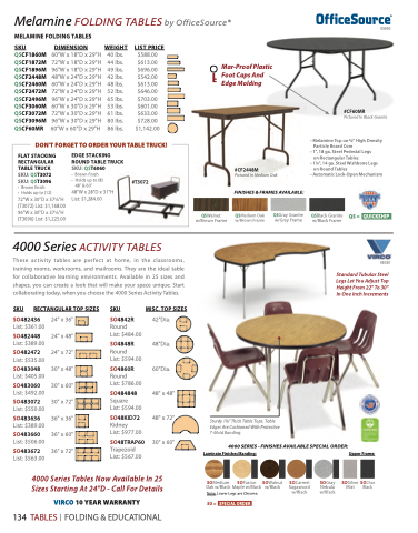 Melamine FOLDING TABLES by OfficeSource® MELAMINE FOLDING TABLES