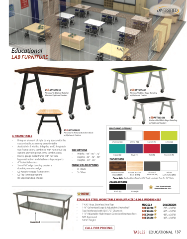 Please Note: Butcher Block Tops Are 13/4" Thick. Laminate Tops Are 11/4" Thick. FRAME OPTIONS