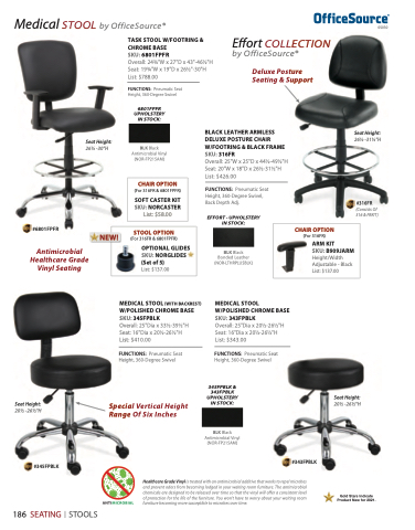 FUNCTIONS: Pneumatic Seat Height, 360-Degree Swivel