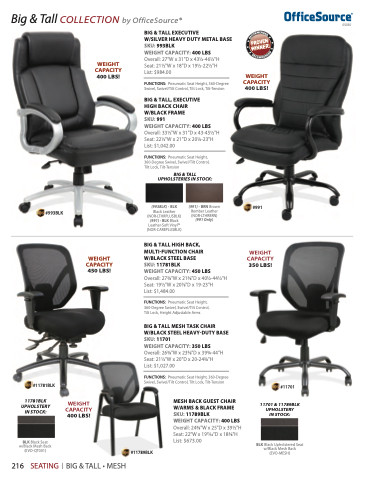 WEIGHT CAPACITY: 400 LBS Overall: 331/2"W x 31"D x 43-451/2"H Seat: 221/2"W x 21"D x 201/4-23"H List: $1,042.00