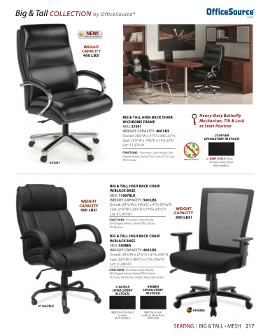 WEIGHT CAPACITY: 400 LBS Overall: 283/4"W x 271/4"D x 413/4-443/4"H Seat: 221/2"W x 183/4"D x 173/4-203/4"H List: $1,087.00