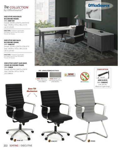 FUNCTIONS: Pneumatic Seat Height, 360-Degree Swivel, Knee-Tilt Control, Tilt Lock, Tilt-Tension