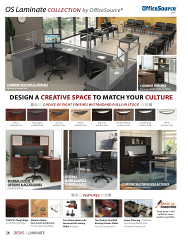 DESIGN A CREATIVE SPACE TO MATCH YOUR CULTURE CHOICE OF EIGHT FINISHES W/STANDARD PULLS IN STOCK