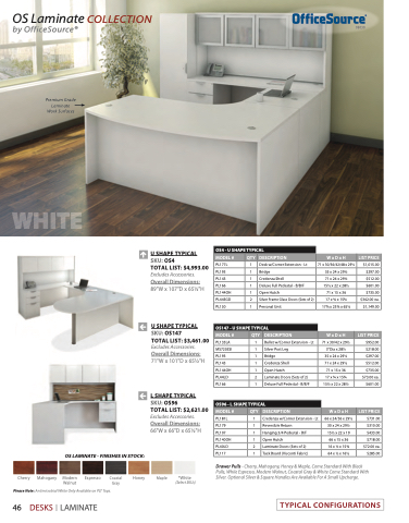 Please Note: Antimicrobial White Only Available on PLT Tops. 46 DESKS | LAMINATE