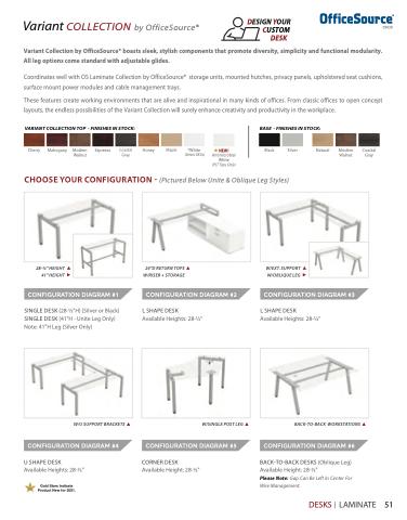 Variant Collection by OfficeSource® boasts sleek, stylish components that promote diversity, simplicity and functional modularity.
